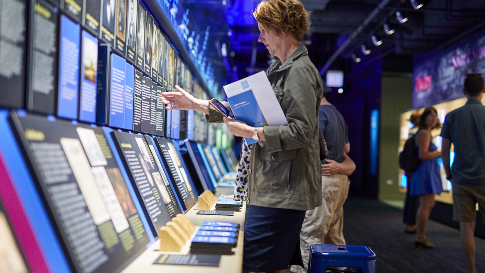 The Mind of a Writer gallery offers a glimpse into how writers think. A favorite part of this exhibit is the Story of the Day, which encourages visitors to type their own line to a story collectively written by those visiting that day. Every morning an opening line from a memorable American book, poem, essay, or short story is selected. From there, it’s up to you to help keep the yarn spinning, line by line.